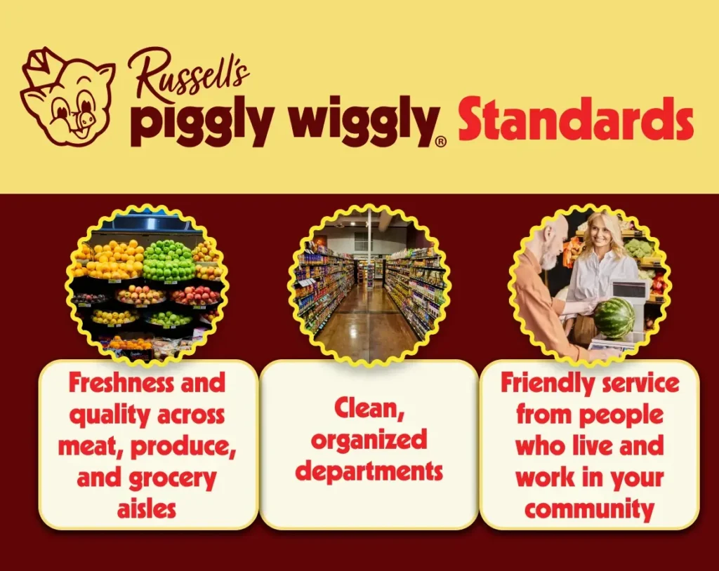We believe families shouldn’t have to guess what they’re getting. Here at Russell’s Piggly Wiggly, you can expect the same care and attention to detail every time.